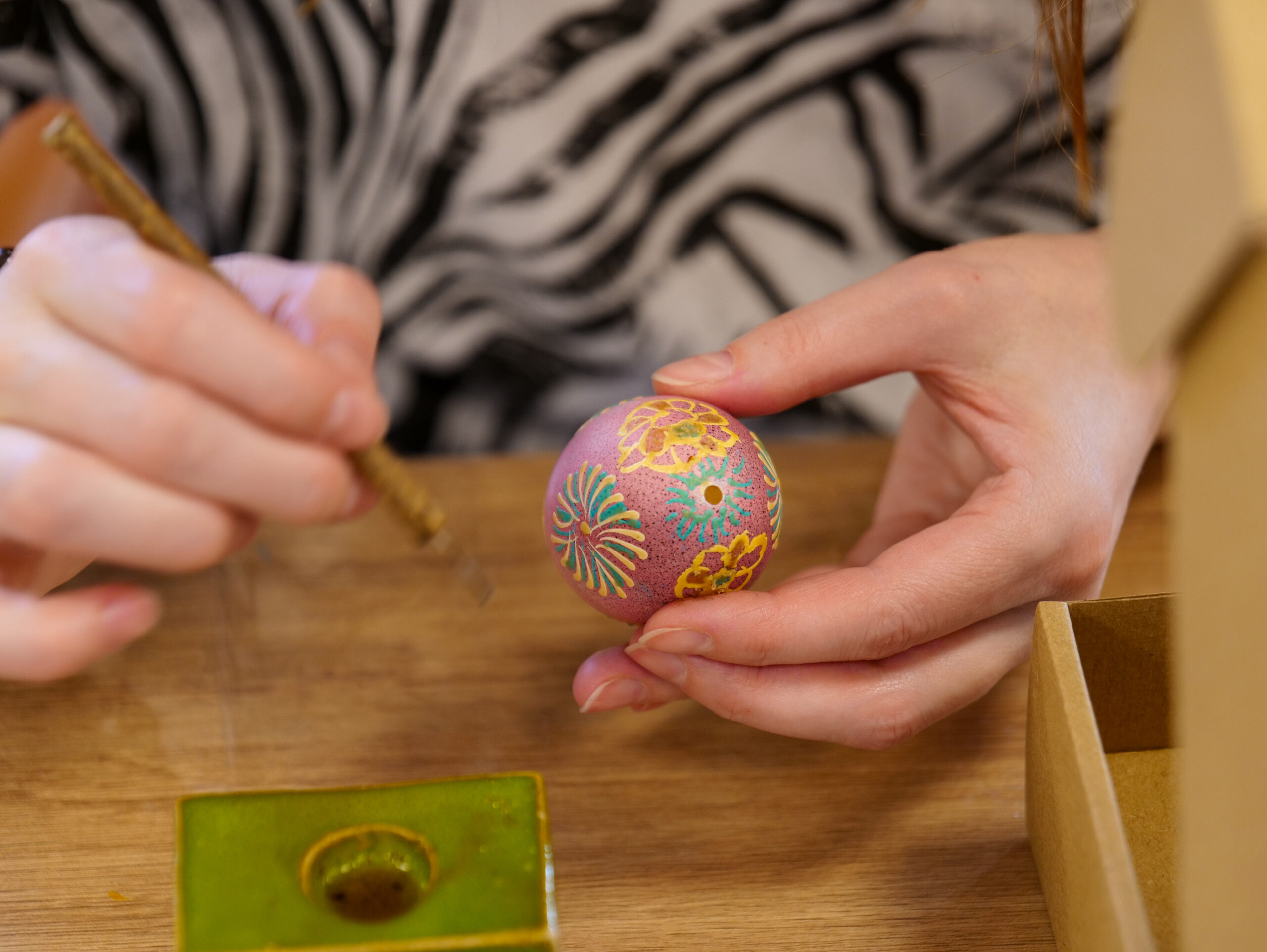 Zapraszamy na kolejne zajęcia z cyklu ETNOteka. Tym razem zajmiemy się piękną wielkanocną tradycją, czyli pisankami. Podczas zajęć, które poprowadzi Magda Rutkowska, będzie można stworzyć niepowtarzalne pisanki zdobione metodą batikową, polegającą na wielokrotnym barwieniu wydmuszek i nanoszeniu wzorów rozgrzanym woskiem pszczelim. Wykonane pisanki po zajęciach zapakujemy w eleganckie pudełka, dzięki czemu będą mogły stać się miłym upominkiem dla bliskiej osoby.