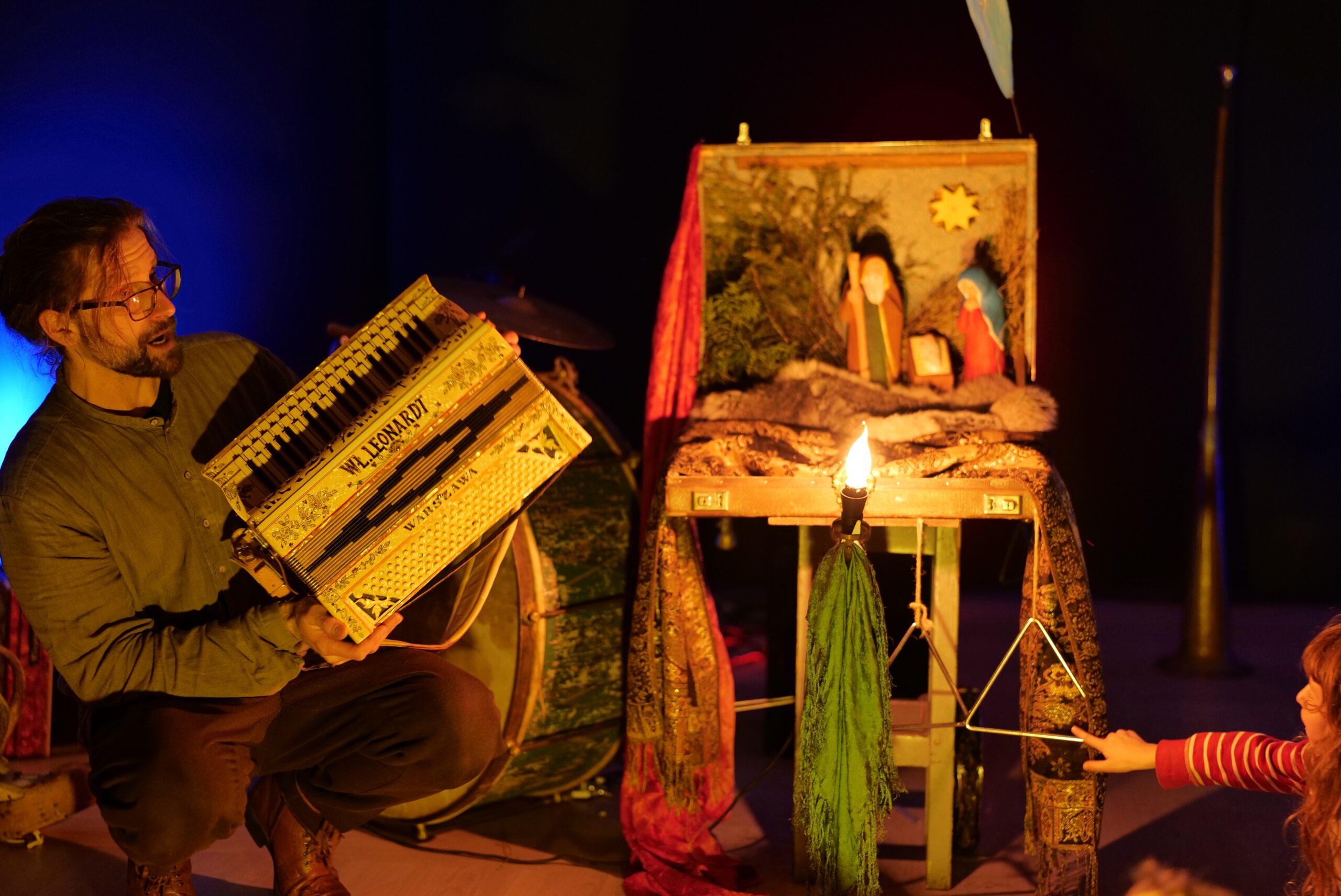 Niewielka walizka po starym akordeonie – to w niej artyści: Mateusz Tymura i Monika Kwiatkowska zmieścili nie tylko świat Heroda, bohatera bożonarodzeniowego przedstawienia popularnego niegdyś na polskich wsiach, ale także coraz bardziej odległą tradycję dawnego kolędowania. Ta więź między starodawnym obrzędem, szopką i lalkarstwem oraz muzyką tradycyjną składa się w teatralno-muzyczną całość. Artyści są przekonani, że pozwoli to przekazać najmłodszemu pokoleniu coś z niepowtarzalnej atmosfery dawnych świąt.