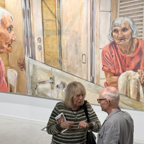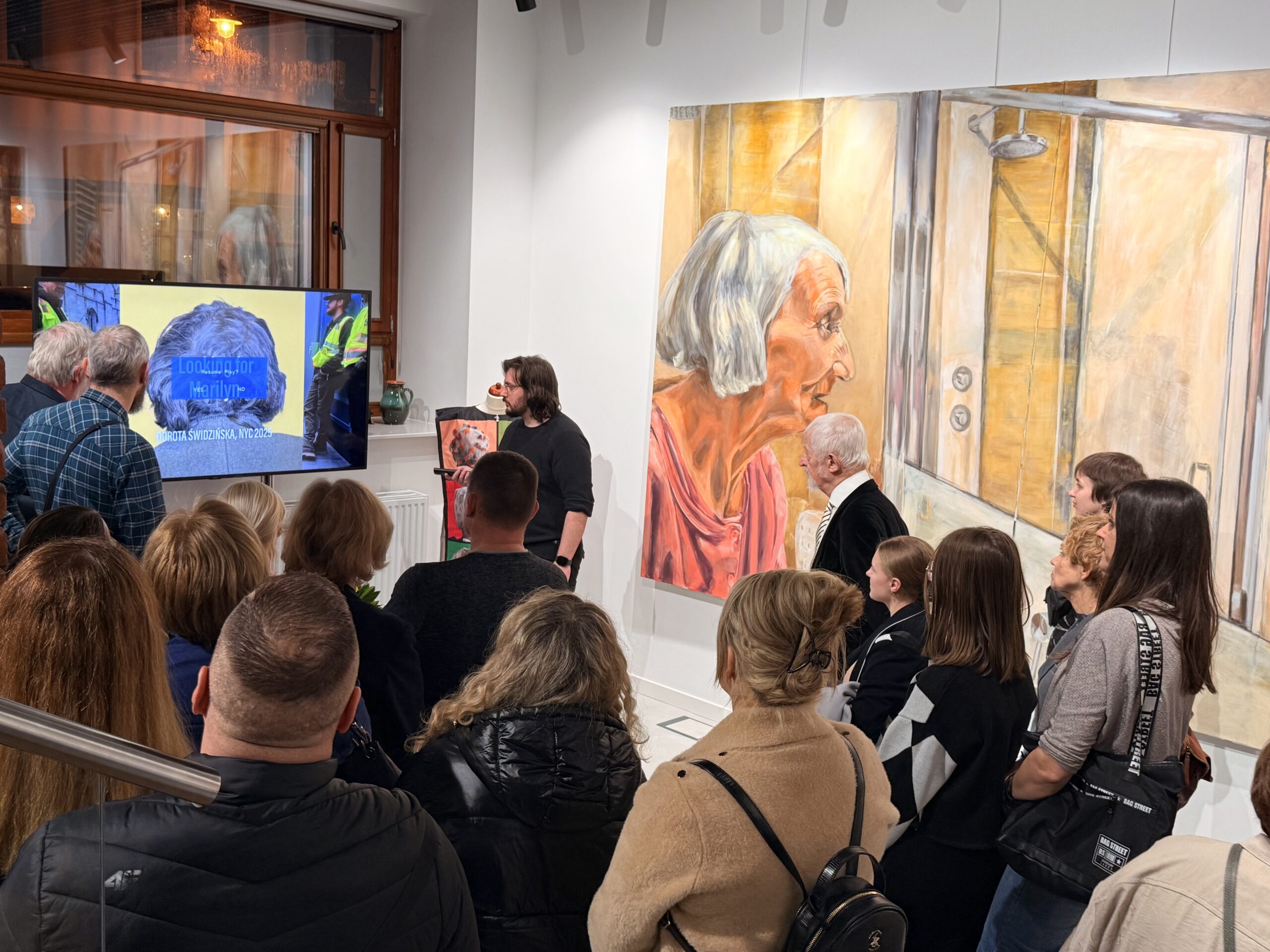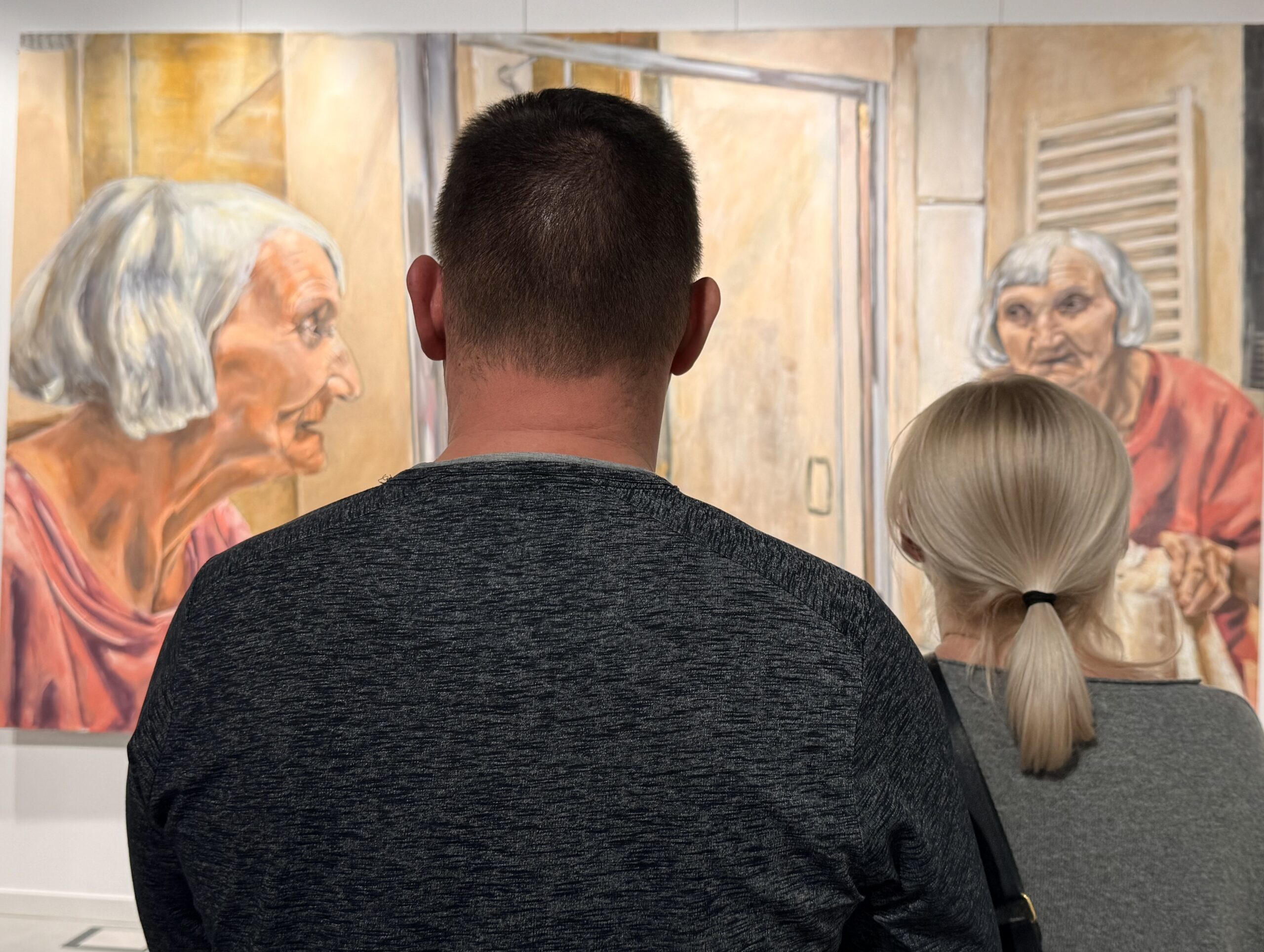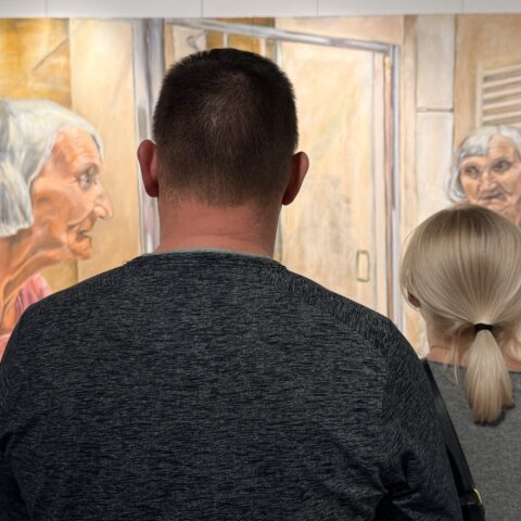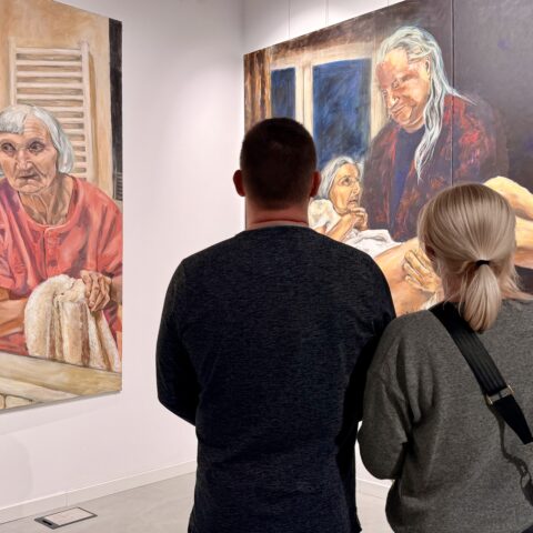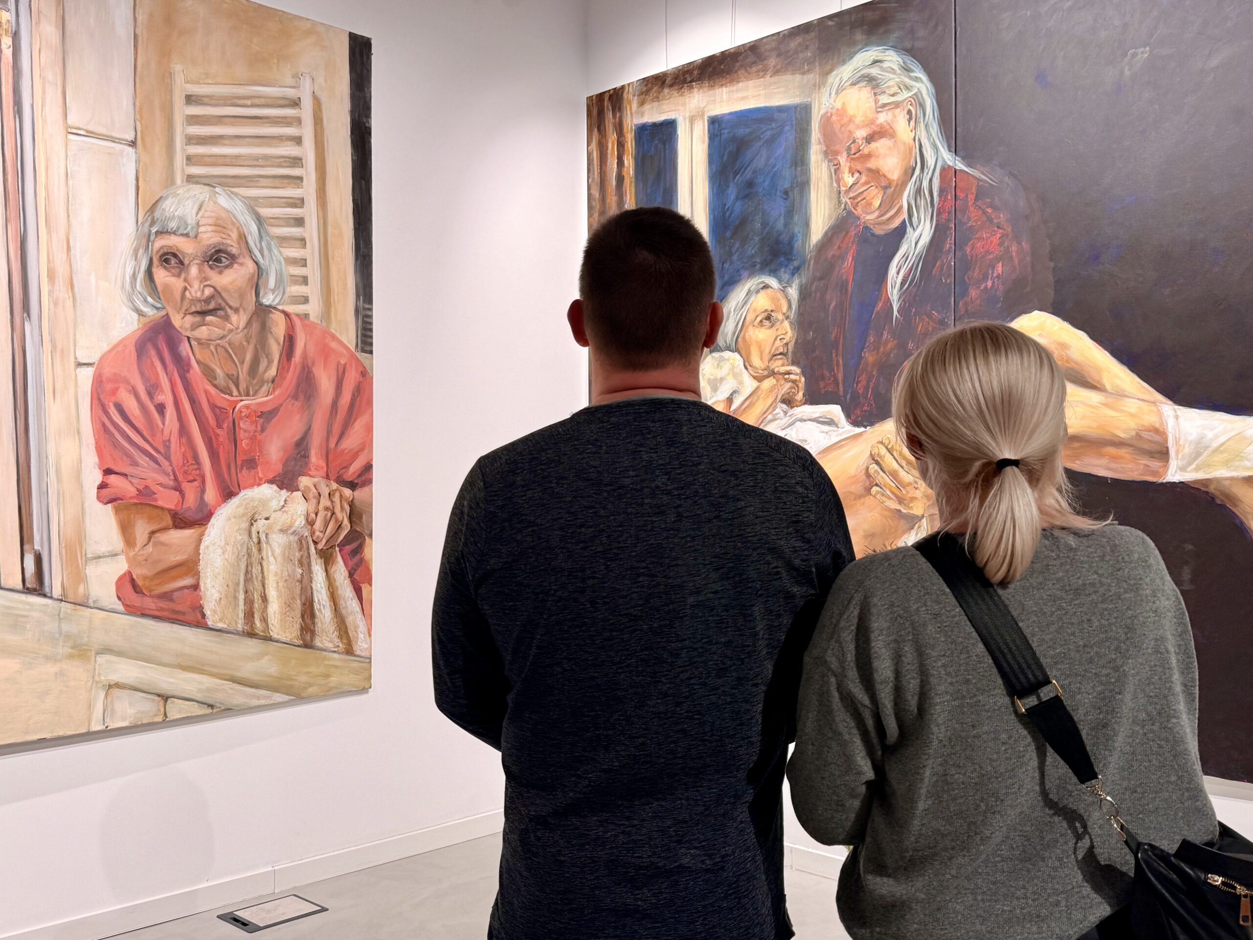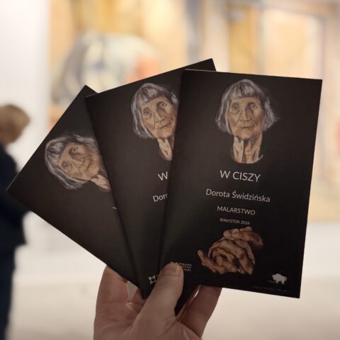 Ekspozycja zatytułowana „W ciszy” to siedem obrazów przedstawiających tę część życia, o której często nie chcemy myśleć ani pamiętać: starość. Dorota Świdzińska pokazuje schyłek życia kobiety w sposób bardzo mocny, dobitnie akcentuje nieuchronny upływ czasu. Zmienione z wiekiem ciało jest tu elementem niezwykle istotnym, ale warto poszukać tu świata ukrytego w oczach przedstawionych postaci. Czy na pewno jest tam tylko smutek? A może też zgoda na to, co nieuniknione? To mądrość czy rezygnacja? Jedno i drugie?